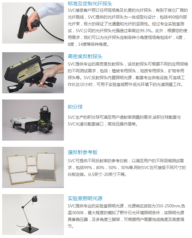 SVC XHR-1024I随机配套功能强大的软件包,同时丰富的可选配件支持用户完成从野外,实验室到小型无人机载甚至是水下等各种不同应用领域的光谱测量需求。