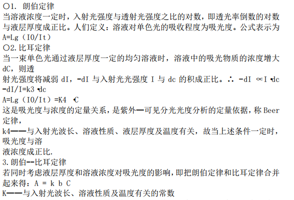 比耳(Beer)确定了吸光度与溶液浓度及液层厚度之间的关系,建立了光吸收的基本定律。